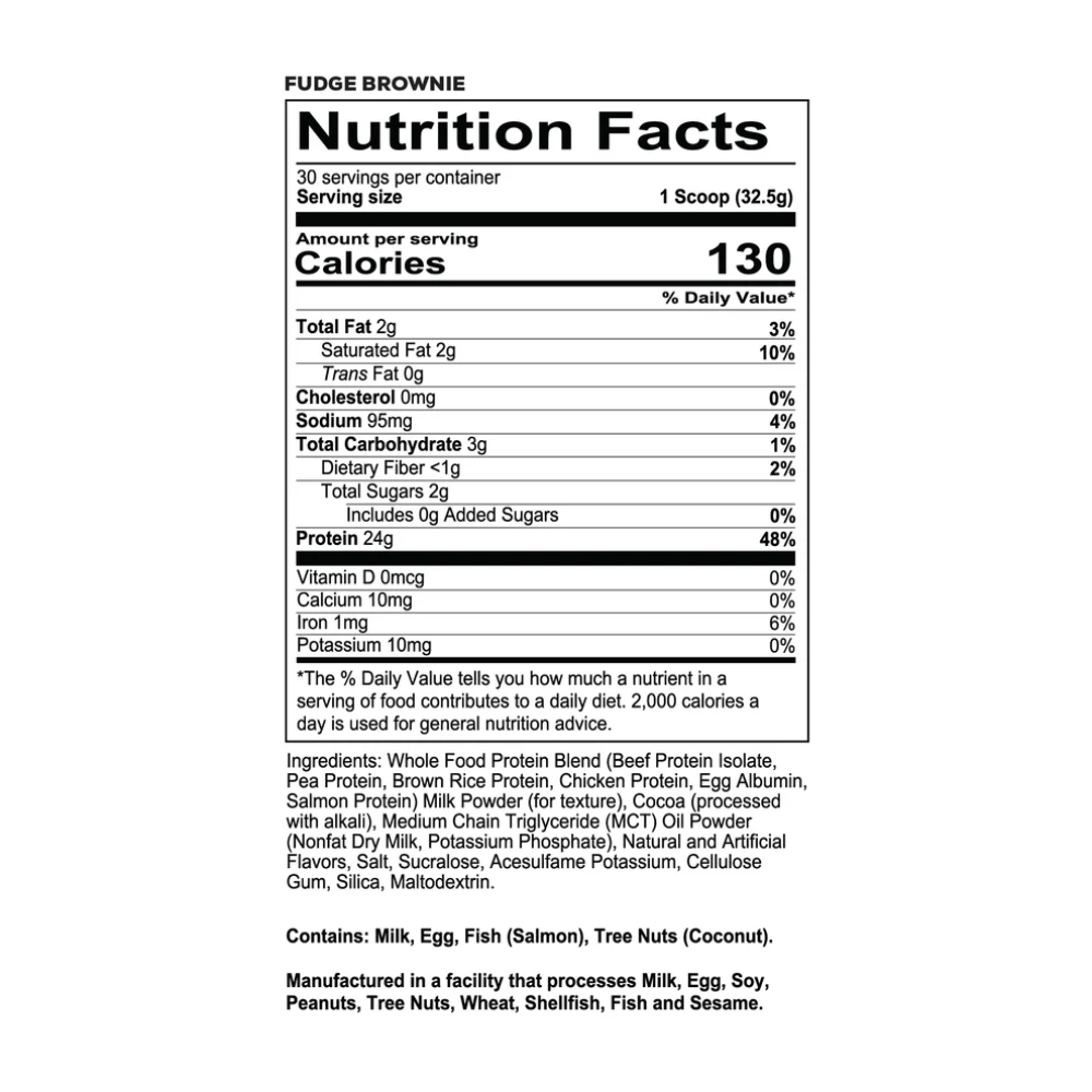 Proteína en polvo #1 en ventas, en la que confían atletas y entusiastas del fitness. 24g de proteína de alimentos integrales por porción, formulado con 5 fuentes de proteína de alimentos integrales de alta calidad: pollo, carne de res, salmón, huevo, guisantes y arroz integral. Sin proteína de suero para una digestión más fácil, sin hinchazón. Perfil de macronutrientes equilibrado diseñado para favorecer la recuperación y el desarrollo muscular. Sabor y textura de batido cremoso para una deliciosa experiencia proteica.
