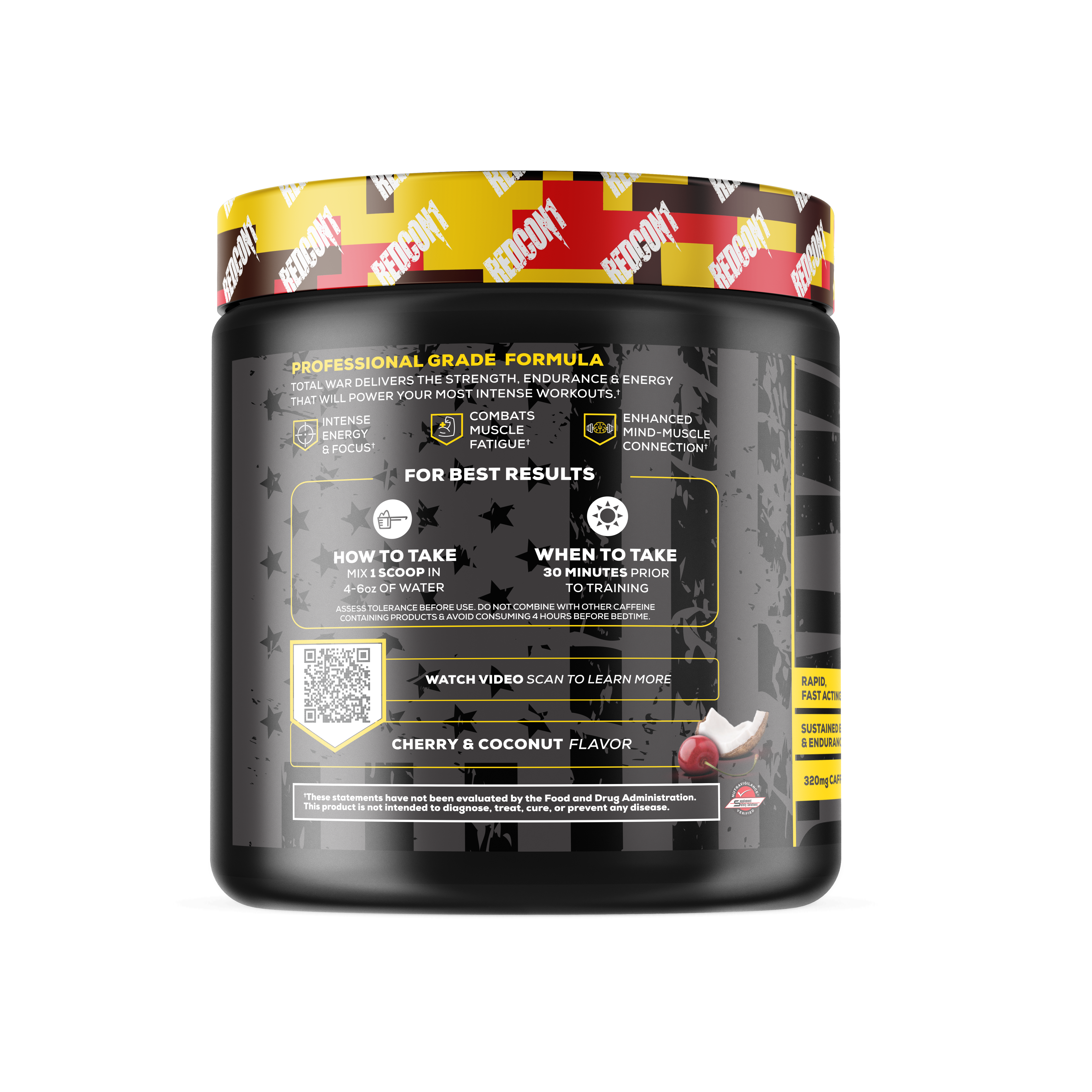 TOTAL WAR es un pre-entreno todo-en-uno que contiene una poderosa combinación de factores de resistencia, bombeo, energía y concentración. Con 320 mg de cafeína, 3,2 g de beta alanina y 6 g de malato de citrulina en el núcleo de la fórmula, cada scoop de TOTAL WAR está cargado con ingredientes clínicamente investigados en niveles eficaces para que puedas entrenar a un nivel de élite.